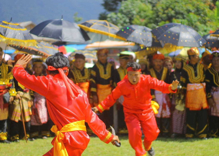 Tari Kadam atau Silat Kadam saat menyambut tamu di Kenduri Swarnabhumi 2022.
