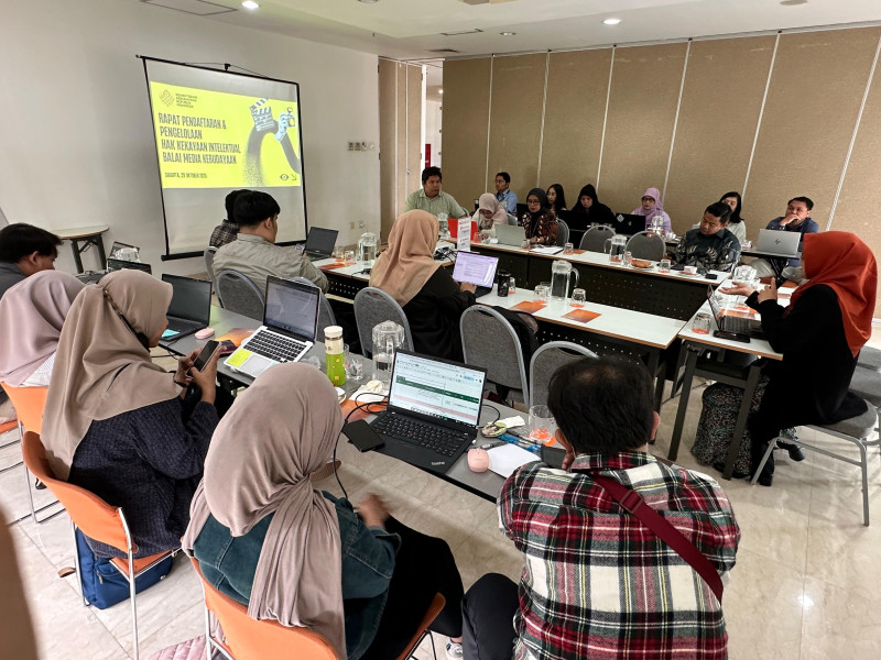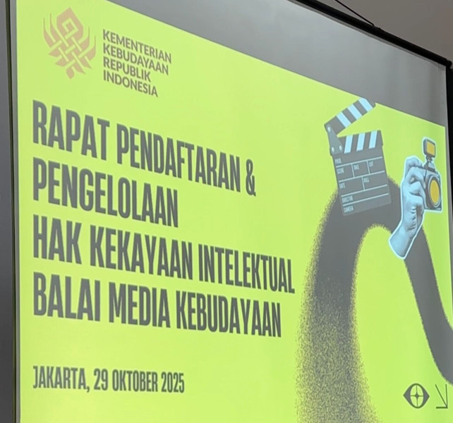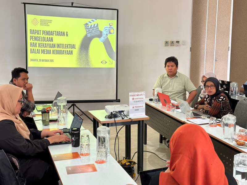 Mengundang berbagai pihak terkait Bapak M. Asrian Mirza, S.S., M.M., Staf Khusus Menteri Bidang Media dan Komunikasi Publik, (Kementerian Kebudayaan), Direktorat Hak Cipta dan Desain Industri, DJKI, (Kementerian Hukum RI), Biro Hukum dan Kerja Sama dan Biro Hubungan Masyarakat dan Informasi Publik (Kementerian Kebudayaan), Direktorat Pemberdayaan Nilai Budaya dan Fasilitasi Hak Kekayaan Intelektual serta Sekretariat Direktorat Jenderal Pengembangan, Pemanfaatan, dan Pembinaan Kebudayaan, Balai Media Kebudayaan menyelenggarakan Rapat Pendaftaran dan Pengelolaan Hak Kekayaan Intelektual yang diselenggarakan di Ruang M1 Harris FX Sudirman pada Rabu, 29 Oktober 2025.