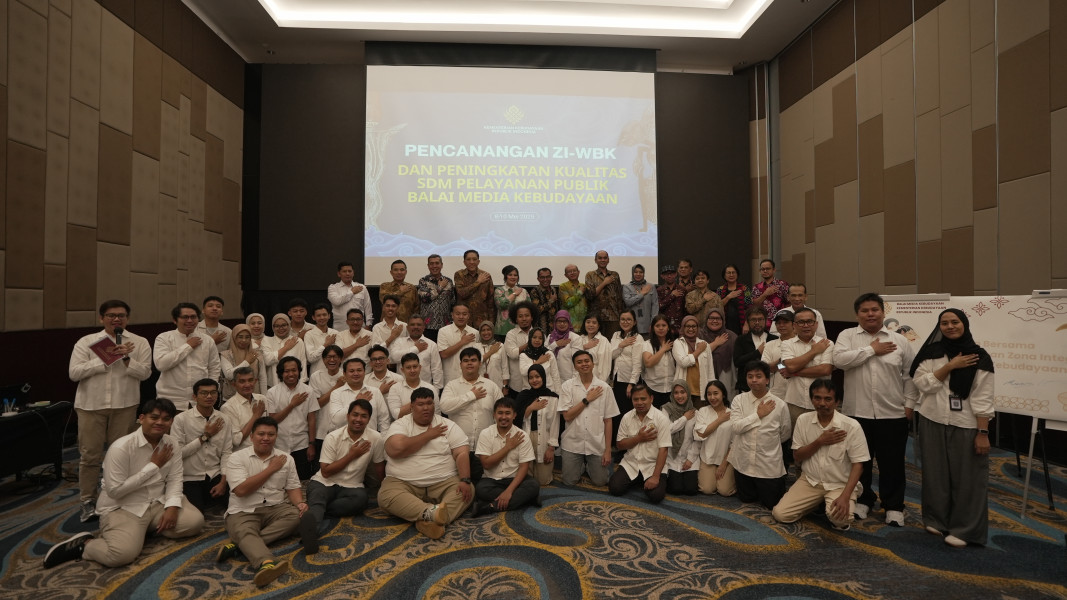 Balai Media Kebudayaan Kementerian Kebudayaan menyelenggarakan kegiatan pencanangan program pembangunan Zona Integritas menuju Wilayah Bebas dari Korupsi/Wilayah Birokrasi Bersih dan Melayani (WBK/WBBM) pada Kamis (8/5) yang diselenggarakan di Aston Sentul Lake Resort & Conference Center. Sebagai satuam kerja yang baru lahir pada akhir 2022, Balai Media Kebudayaan perlu kiranya menata diri dan mencari bentuk ideal dalam menjalankan tugas dan fungsinya. Sejalan dengan Reformasi Birokrasi, Balai Media Kebudayaan berharap turut andil menata diri dan menyukseskan terwujudnya Zona Integritas - Wilayah Bebas dari Korupsi/Wilayah Birokrasi Bersih dan Melayani (WBK/WBBM).